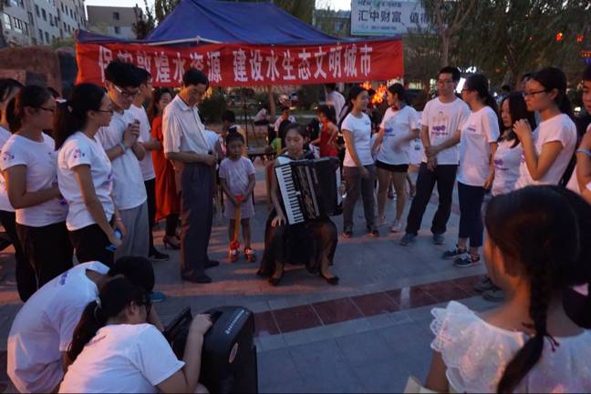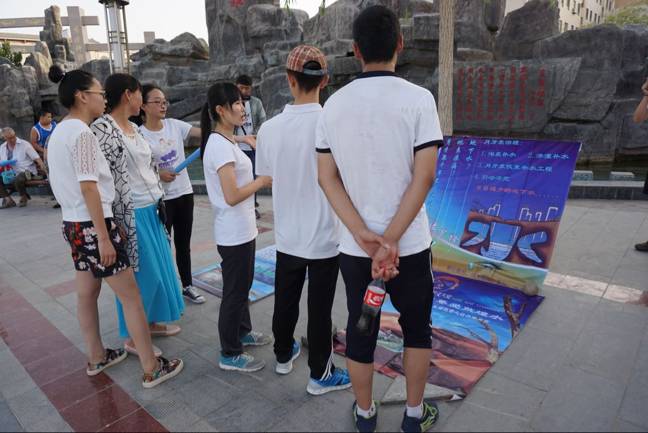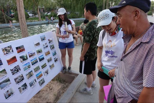照片墙及海报内容的讲解则更多的是吸引到了一些成年人,小伙伴们认真地对照片和海报进行了深入浅出的讲解,同时,很多敦煌居民对于环保问题也有着自己的认识和思考,在这个过程中我们不仅是环保思想传递者,同时也加强了自身对敦煌水问题的了解和思考。