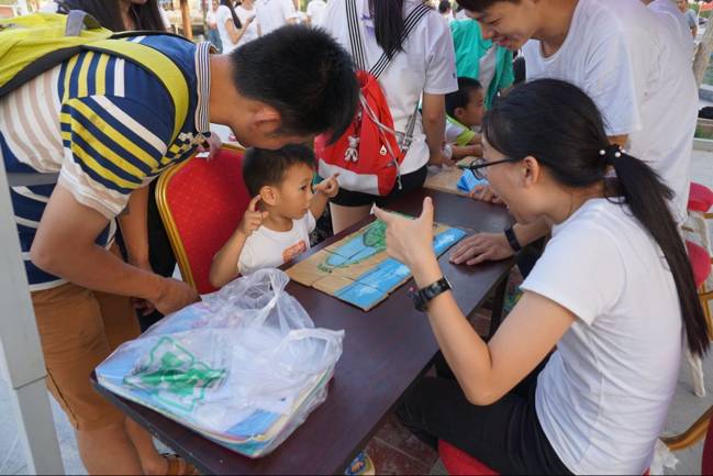 为了吸引小朋友的参与,营员们精心准备了拼图游戏,同时也根据拼图的内容----节水标志、月牙泉图像为他们传递一份绿色的思想,希望通过这种简单有趣的方式在他们的心中埋下一颗绿色的种子!